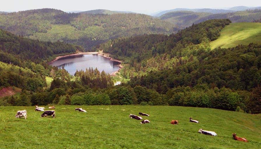 “Natureinkehr”: Das Bild zeigt eine einladende Naturkulisse in den Vogesen, die den klassischen Natur-Bilderbuch-Phantasien entspricht. Die faulen Kühe im Vordergrund runden das Ganze geradezu perfekt ab und laden zum Verweilen ein.